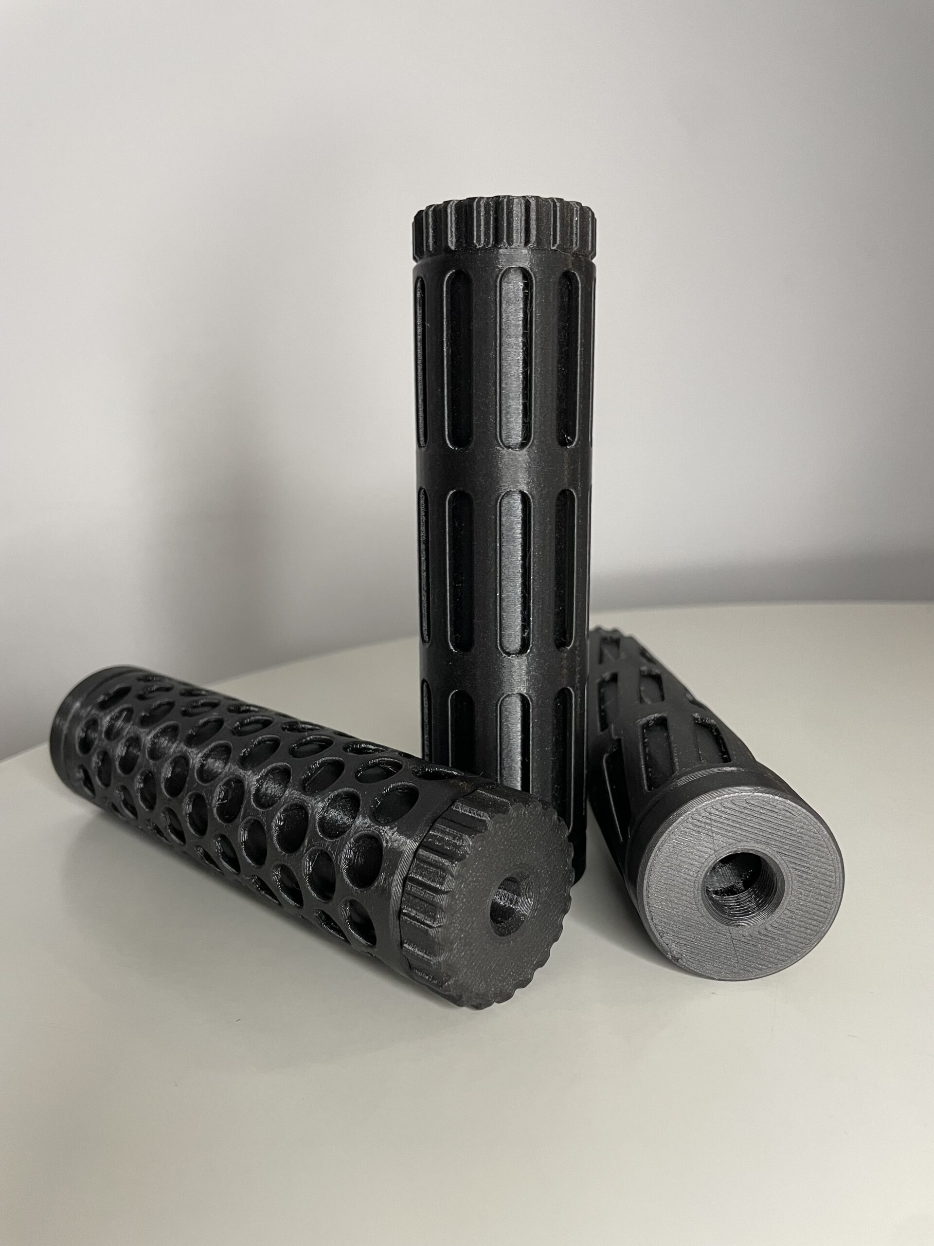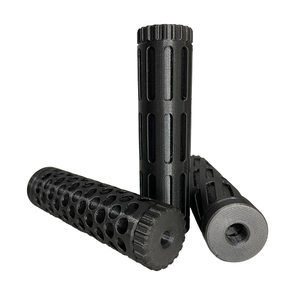 Un supresor (también conocido como silenciador) para réplicas de Airsoft es un accesorio que se coloca en la boca del cañón de la réplica para reducir el sonido del disparo. Impreso en filamento PETG, 15cm de altura.